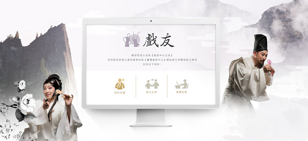 臺灣戲曲中心,將傳統文化價值融入現代感,摒除視覺干擾,透過清晰明瞭的設計以及直覺式操作介面,在畫面與畫面之間,感受台灣戲曲的魅力。此站更匯聚了各館所、表演者、網路資源等,厚植臺灣戲曲創作能量,提升藝術質感與價值,成為「華文戲曲藝術世界中心」