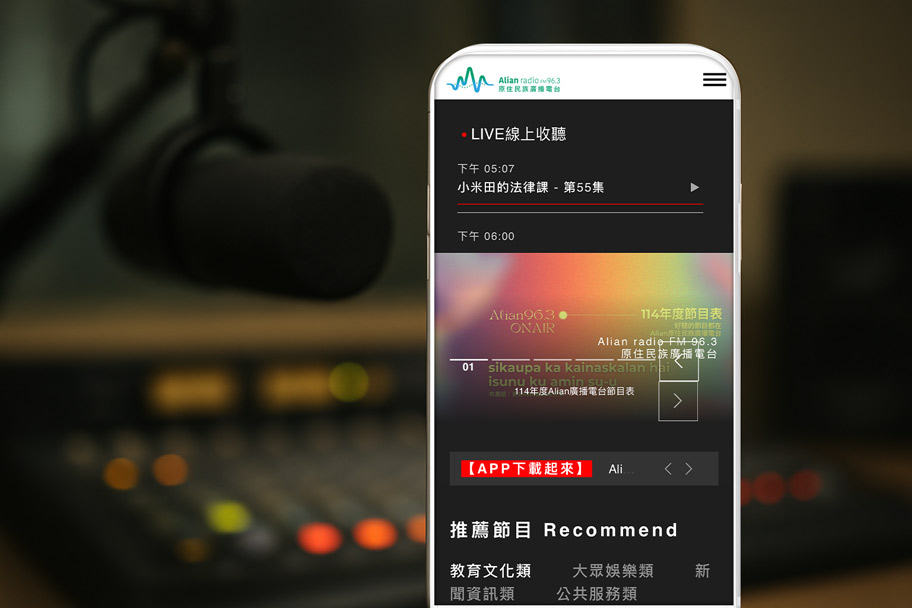 整合「原視節目、原視新聞、ALIAN 廣播電台」,以媒體服務角度規劃整體網站。特別注重「線上視聽、影音串接」等項目,並採沉浸式的節目觀賞體驗。對於線上數位影像、影音之呈現與展示方式,提供更友善、流暢、舒適的網站瀏覽體驗。創造高優質的線上數位影像、影音平台等設計與開發經驗。